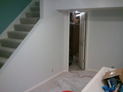 So i thought i would give a quick and dirty update on the basement. We are putting in baseboards and we have the door in place. This is whats left